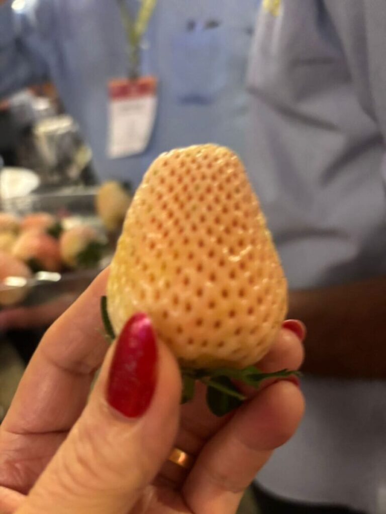 Depois do sucesso do já conhecido morango do amor, tivemos a alegria de conhecer o Morango Branco – batizado pela professora Rosilene Campolina como Morango da Paz. Um fruto doce, suculento e delicado, que conquistou meu paladar de imediato.