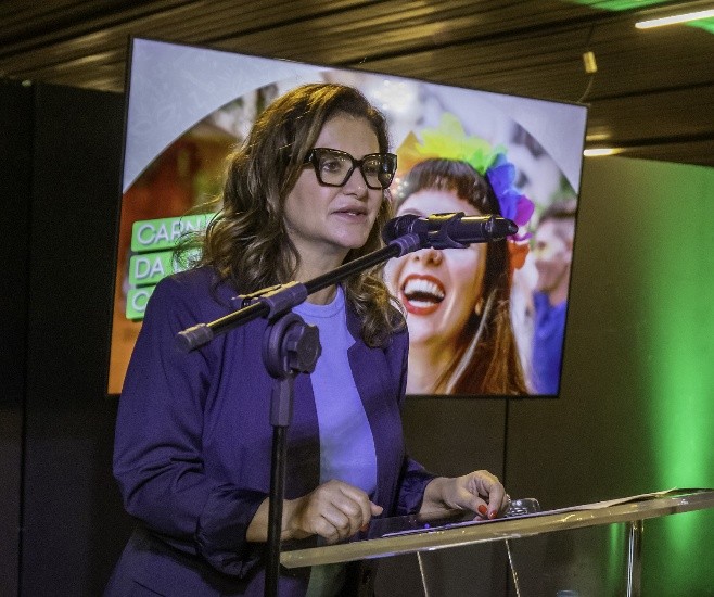 A diretora de Comunicação e Marketing da Cemig, Cristiana Kumaira, falou do papel da Companhia como incentivadora e parceira do carnaval de Minas Gerais, destacando o compromisso da empresa com a cultura no estado de forma ampla e descentralizada.