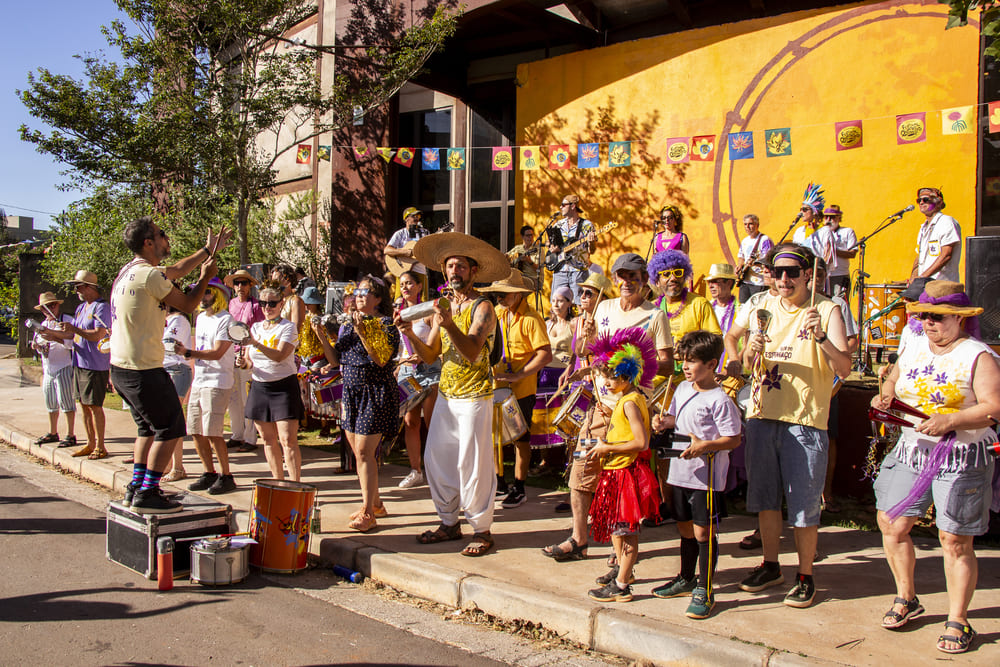 A programação não se limita aos espaços fechados. No dia 7 de fevereiro, os blocos Para Todos (com o Grupo Atrás do Pano) e Flor do Espinhaço levam o cortejo para as praças do bairro.