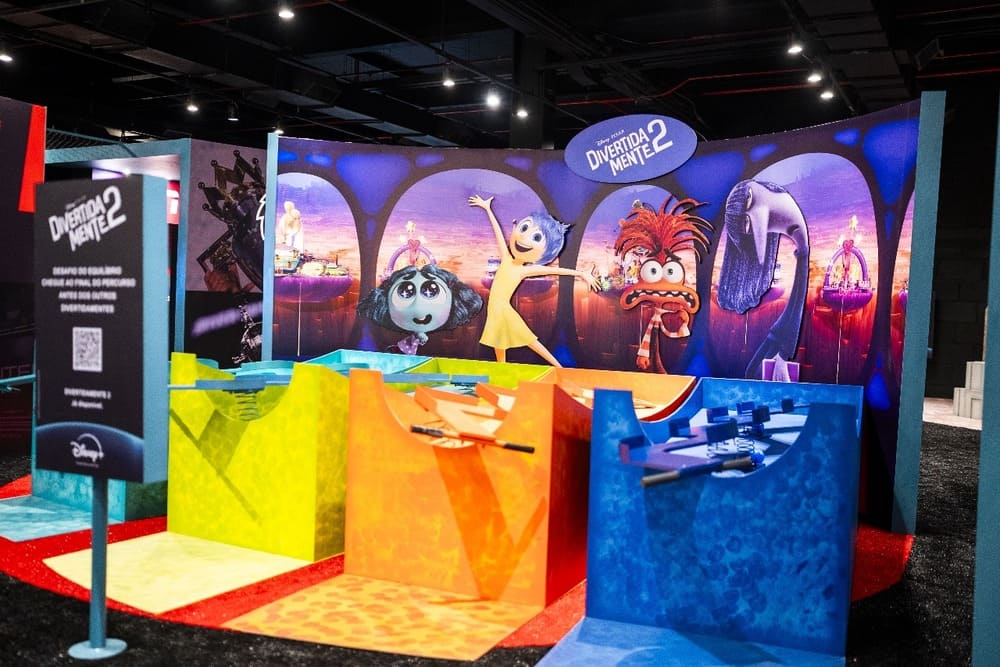 - Pixar (Divertida Mente 2): O cenário é decorado com elementos do filme, e o desafio é ajudar os sentimentos a atravessar uma ponte de molas em equilíbrio. Há ainda uma área complementar com mesinhas temáticas para atividades manuais, estimulando a criatividade dos pequenos.