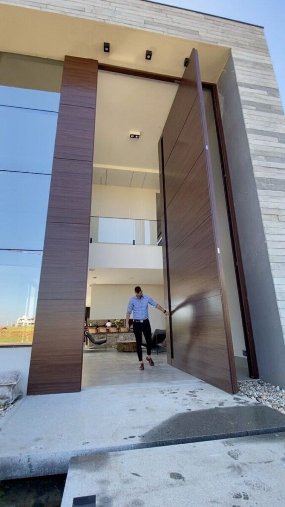 Com o tempo, essa linguagem de imponência atravessou os muros religiosos e passou a ser utilizada em edifícios civis e residenciais, ganhando novos contornos. Palácios, mansões e, mais recentemente, casas contemporâneas adotaram as grandes portas como um símbolo de sofisticação e prestígio, muitas vezes com o objetivo de causar impacto à primeira vista.