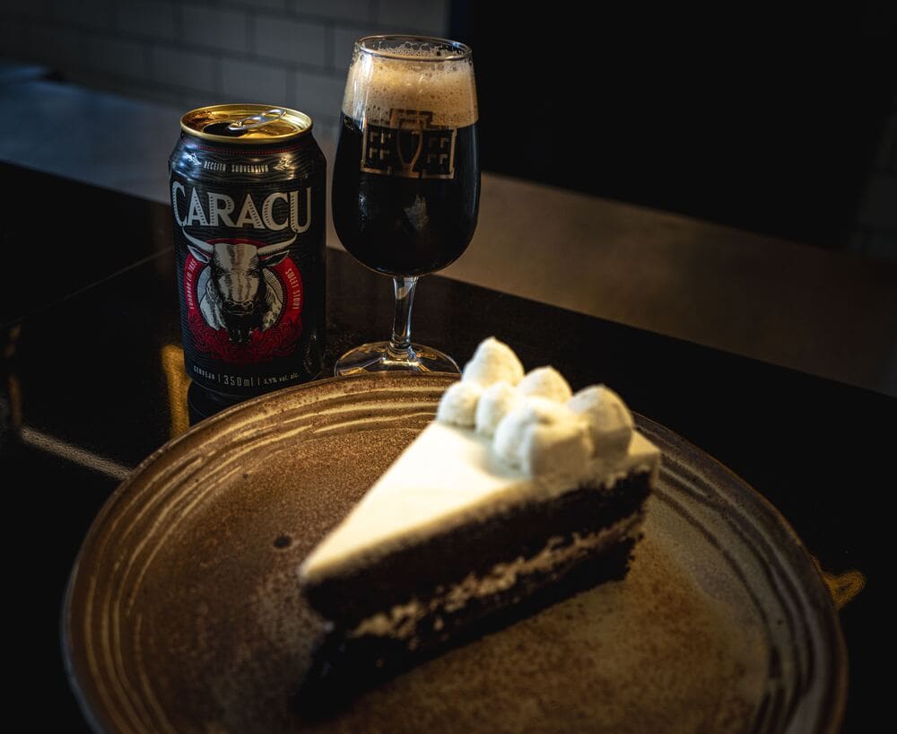 Bolos de chocolate costumam pedir um café, mas a chef Cafira sugeriu a harmonização por contraste e similaridade com uma cerveja do estilo Porter ou Stout, que possuem malte torrado em sua composição.