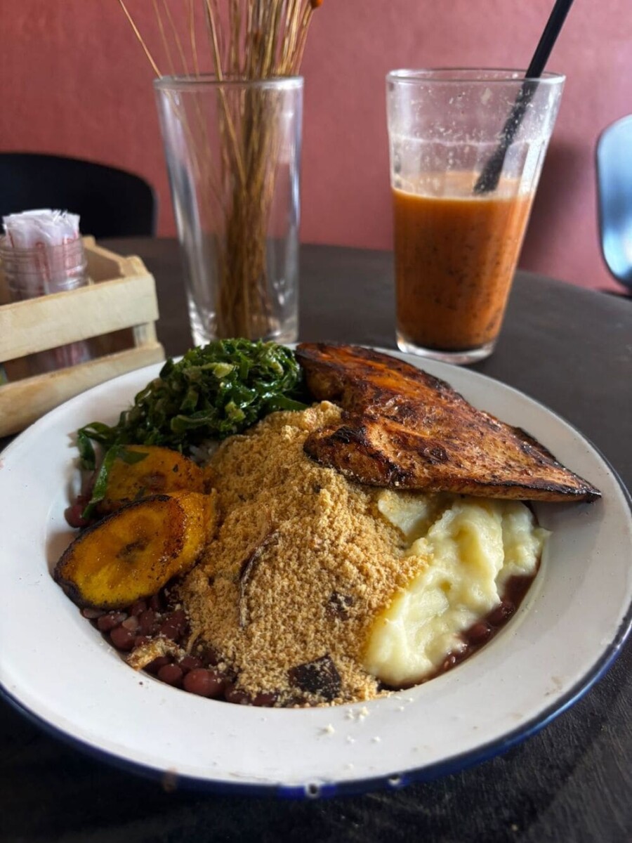 Marília cresceu observando panelas grandes, fogo vivo, panela de barro, azeite de dendê usado sem medo — e aprendeu cedo que tempero é gesto e intenção. Mas sua cozinha não é uma reprodução da culinária baiana. Ela é uma interpretação autoral: um encontro entre sabores do Nordeste, de Minas, técnicas contemporâneas e o clima acolhedor de Santa Tereza.