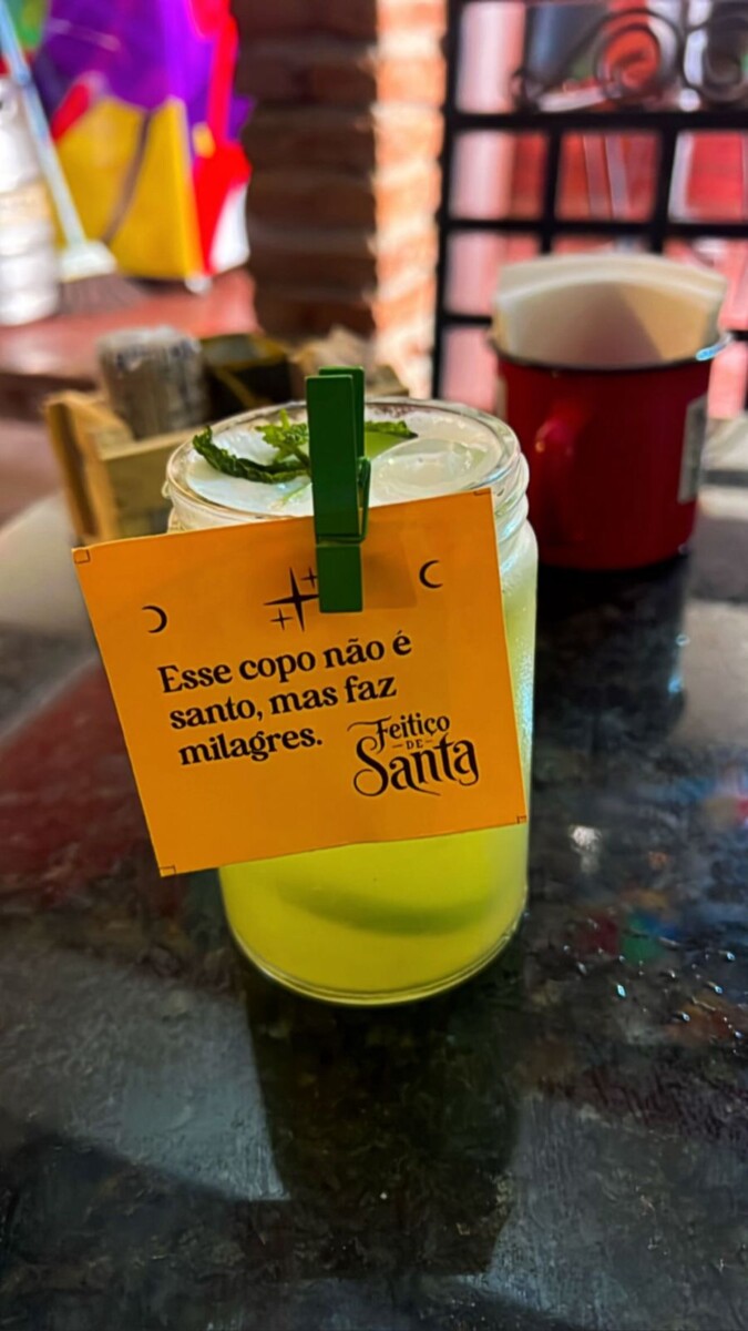 Se na cozinha o feitiço acontece no fogo, no bar a magia é líquida. O bar do Feitiço de Santa Tereza é um laboratório vivo de criação — um espaço onde pesquisa, sensibilidade e memória gustativa se encontram para dar origem a drinks autorais que surpreendem pela estética, pelo aroma e, principalmente, pelo sabor.