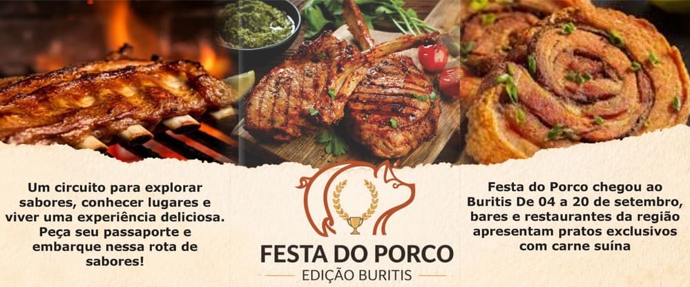 É a partir dessa riqueza gastronômica que nasce a Festa do Porco – Edição Buritis, um circuito que convida o público a redescobrir esse ingrediente tão marcante por meio de releituras criativas e experiências que valorizam a boa mesa.