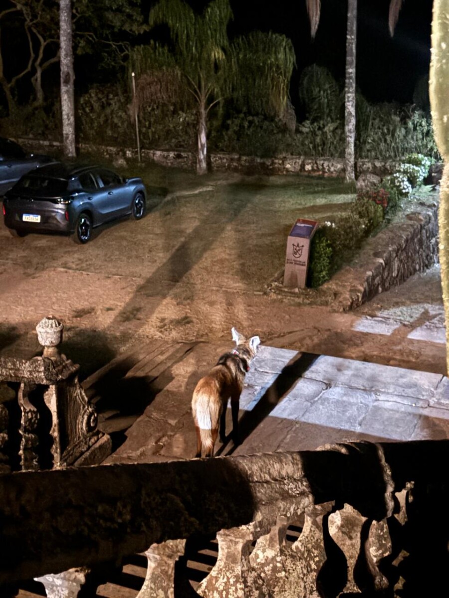 Lobo-guará registrado na RPPN Santuário do Caraça, nas proximidades do adro da igreja