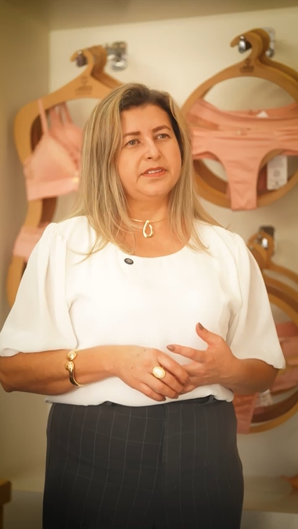 Já Valéria da Silva, à frente da Vivance, investe desde o início na capacitação da equipe e no fortalecimento da identidade da marca. Há 17 anos no mercado, ela começou costurando suas próprias peças e hoje produz até 7 mil unidades mensais, vendidas tanto no varejo quanto no atacado.