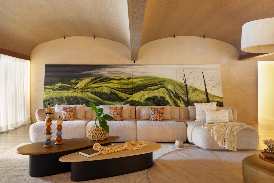 Estreante na mostra, o designer explorou paleta neutra com toques ousados, iluminação reaproveitada e soluções simples que trouxeram sofisticação e aconchego.