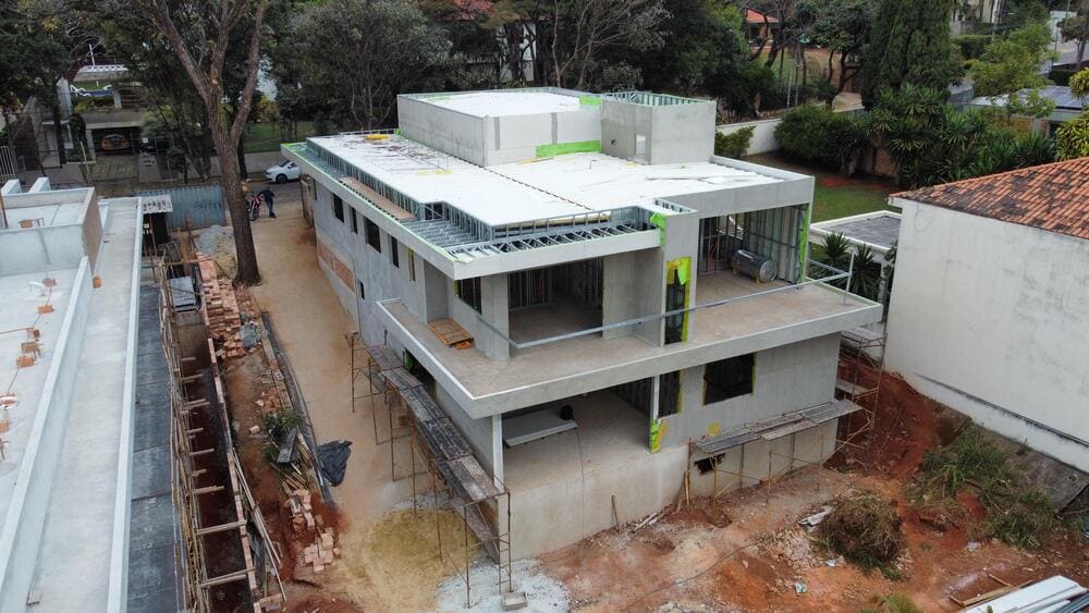 Uma nova residência em construção na região da Pampulha, em Belo Horizonte, começa a chamar atenção pela proposta arquitetônica moderna e pelo uso de soluções inovadoras no setor da construção civil. O projeto, que conta com 430 m² de área construída distribuídos em dois pavimentos e 17 ambientes, adota o sistema construtivo Light Steel Frame (LSF) – uma tecnologia edificante a seco, que utiliza estruturas de aço, garantindo agilidade, precisão e sustentabilidade à obra.
