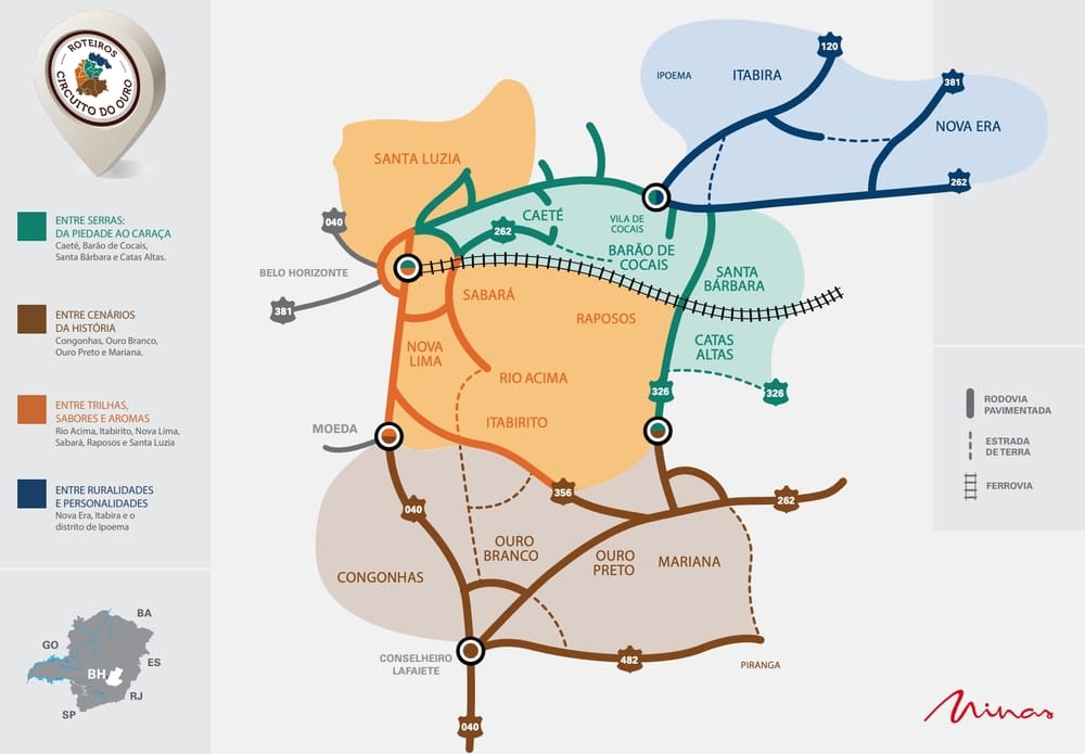 Pela primeira vez com seu posicionamento de marca atual em uma feira internacional, o Circuito do Ouro apresentará seus quatro roteiros temáticos, que unem história, gastronomia, arte e natureza: